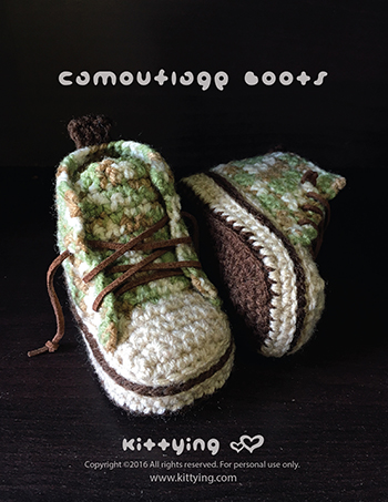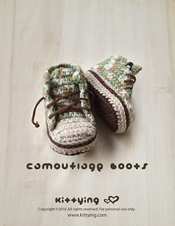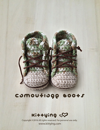 Camouflage Baby Boots Crochet Pattern, Chart & Written Pattern