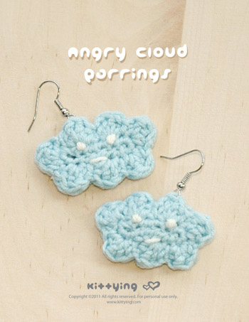 Crochet Angry Cloud Earrings Pattern, Instant Download