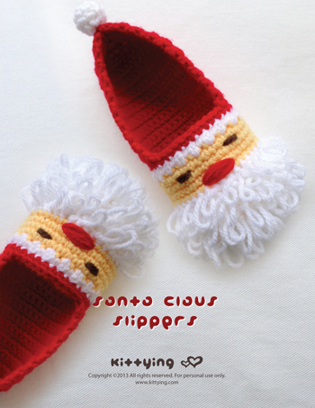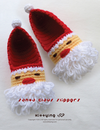 Santa Claus Children Slippers Crochet Pattern for Christmas Winter Holiday, Chart & Written Pattern