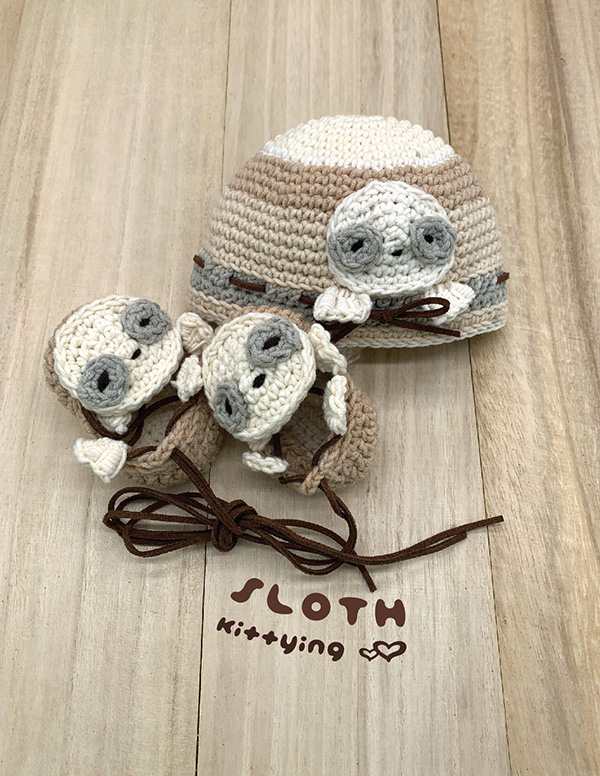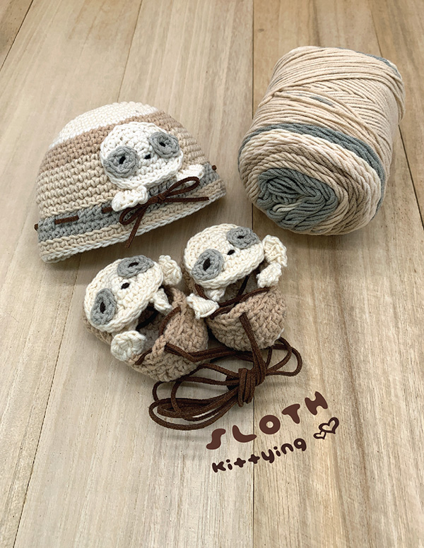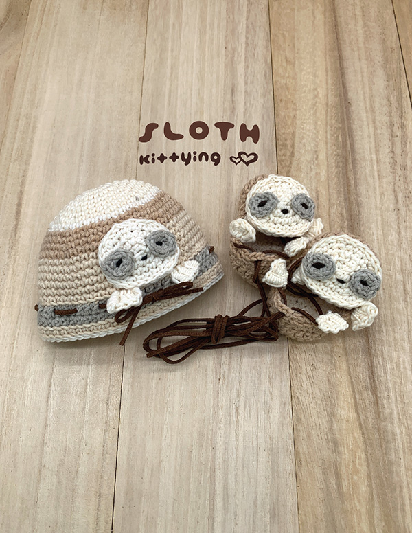 Sloth Hat and Shoes Gift Set Crochet Pattern for Preemie / Doll