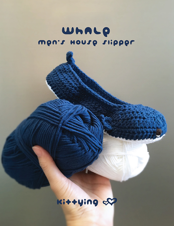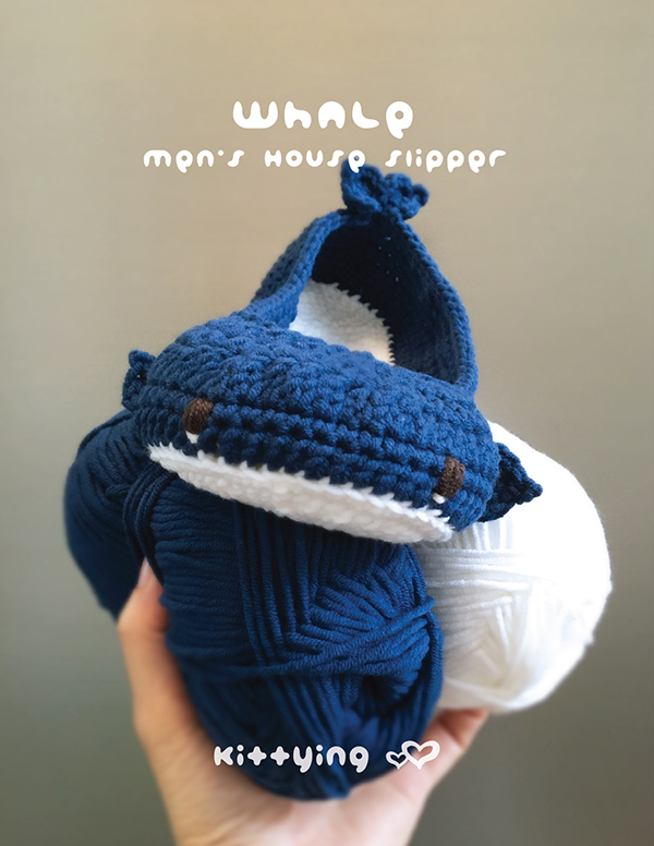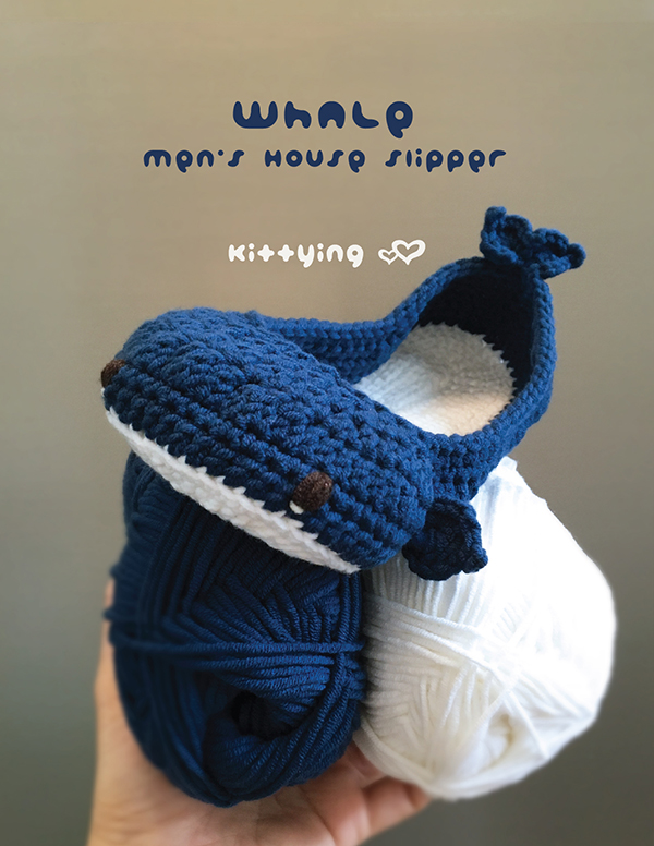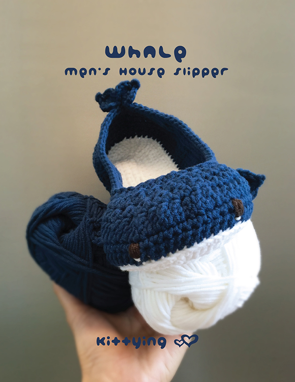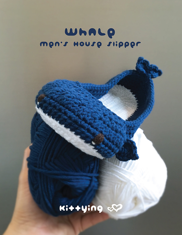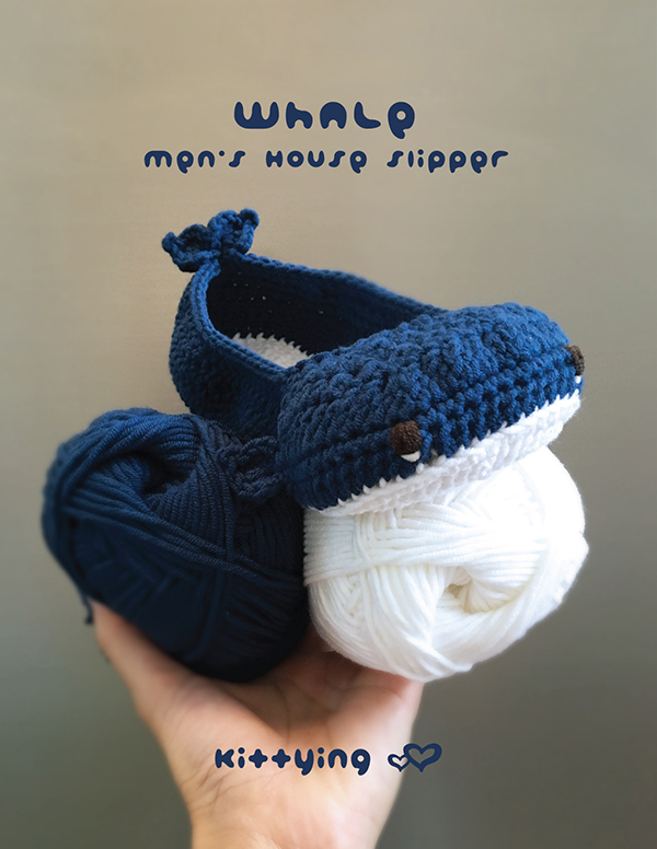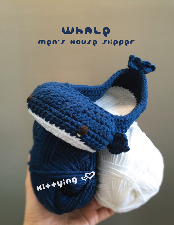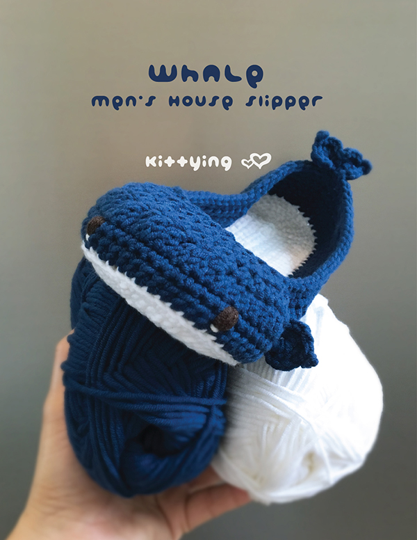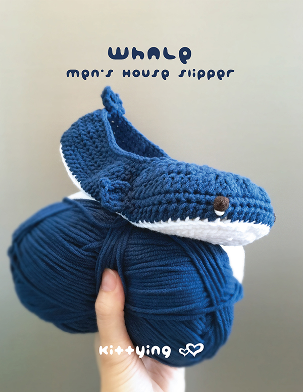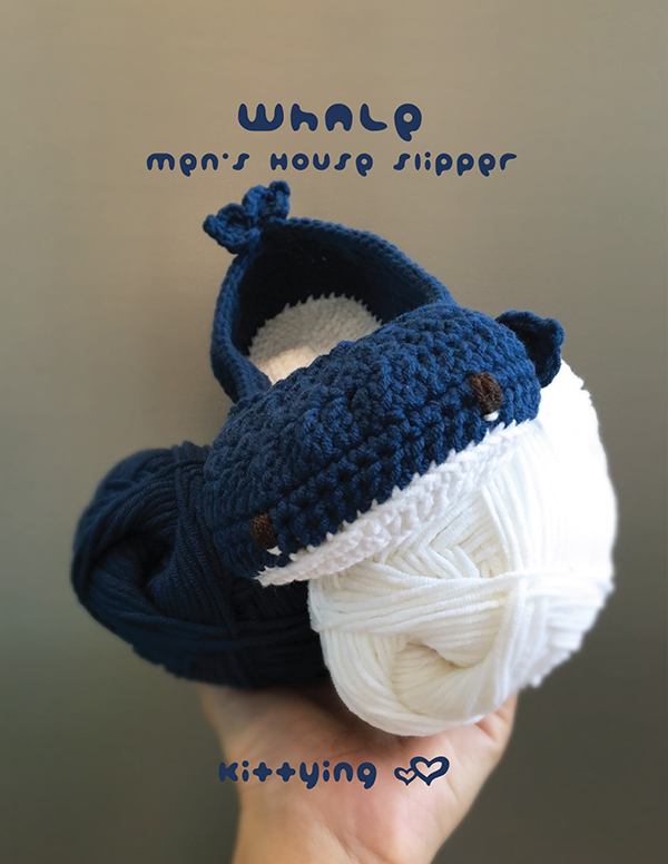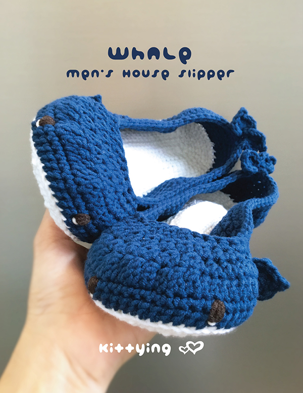 Whale Men’s House Slipper Crochet Pattern, Chart & Written Pattern
